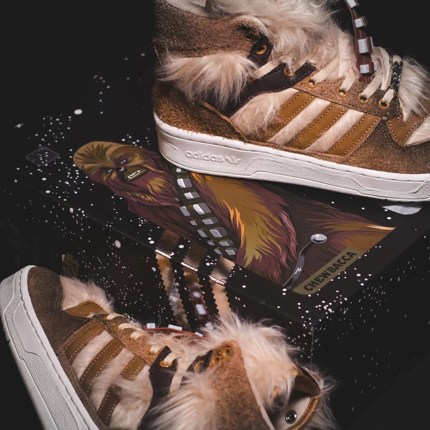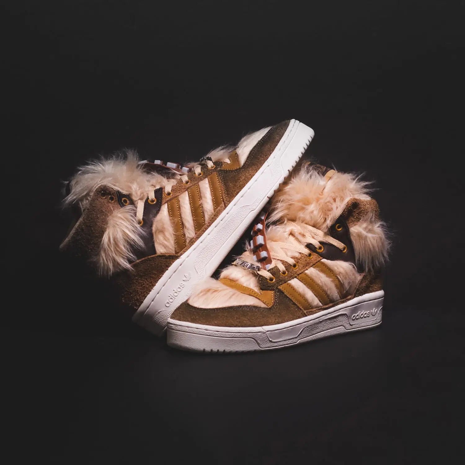 Adidas is back with another iconic collaboration with Star Wars. We have already seen Princess Leia, Han Solo, Yoda, Lando Calrissian and Boba Fett. But the story would not be complete with our favourite Wookiee, Chewbacca. "RROOAARRGGHH!" is one of his most famous lines on "The Empire Strikes Back". This redesign of the classic Rivalry Hi is made to honour the 7'5'' loyal Wookiee: Chewbacca. ​​What feels like strands of Chewie's hair sit on the upper of this Rivalry Hi, making this fan-favourite Star Wars character somewhat more tangible. A piece on the tongue of the shoe gives a nod to the belt he wore on the "The Empire Strikes Back". The sockliner has a print featuring him on it. The special packaging includes dedicated lace jewels and a poster. All to celebrate the 40th Star Wars anniversary of Episode V. ​​A clear choice to represent Chewie, the Rivalry silhouette was first created for the basketball courts in the '80s before being adopted by the skateboarding, punk, and BMX scenes then eventually becoming the streetwear icon it is today.
