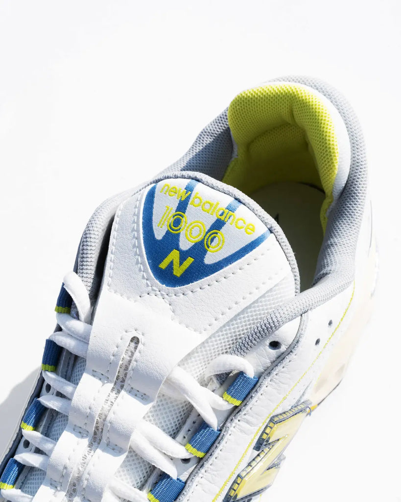 The panel edges feature yellow embroidered details, showcasing prominent 1000 branding on the lateral toe and tongue and the iconic N logo on the midfoot.