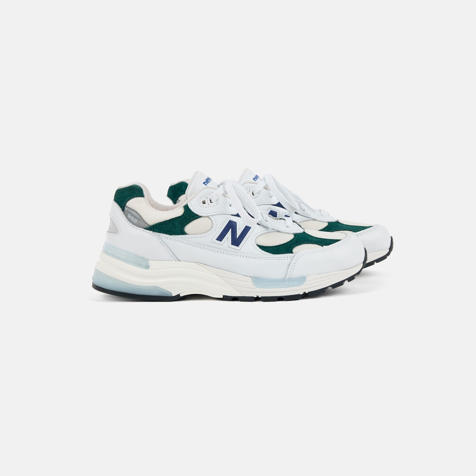Following the return of core colorways and subtle earthy tones, New Balance introduces a clean, minimalist take on the iconic 992 silhouette, the U992GB "Marsh Green." This Made in USA edition features an off-white leather base paired with cream mesh underlays, elevated by rich forest green suede and accented with hits of royal blue throughout.