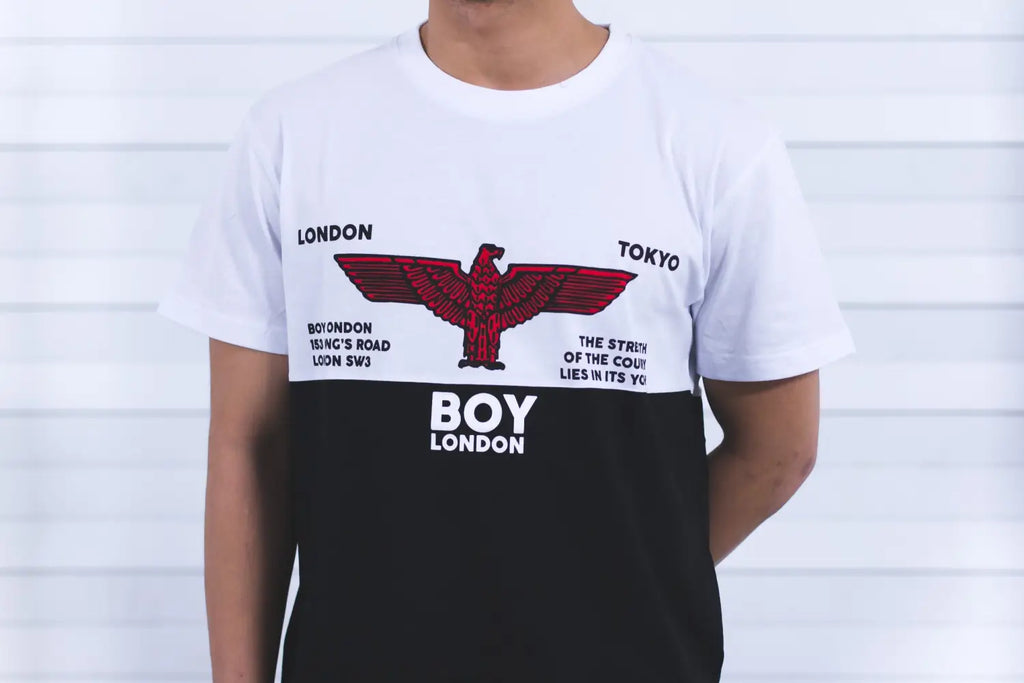 Their current collection contains many of their classic black tee's and crew sweatshirts with its iconic Boy London branding in the front, also displayed in their new collection of colour-block tee's. Boy London sticks to its simplistic logo throughout this  Spring and Summer collection.