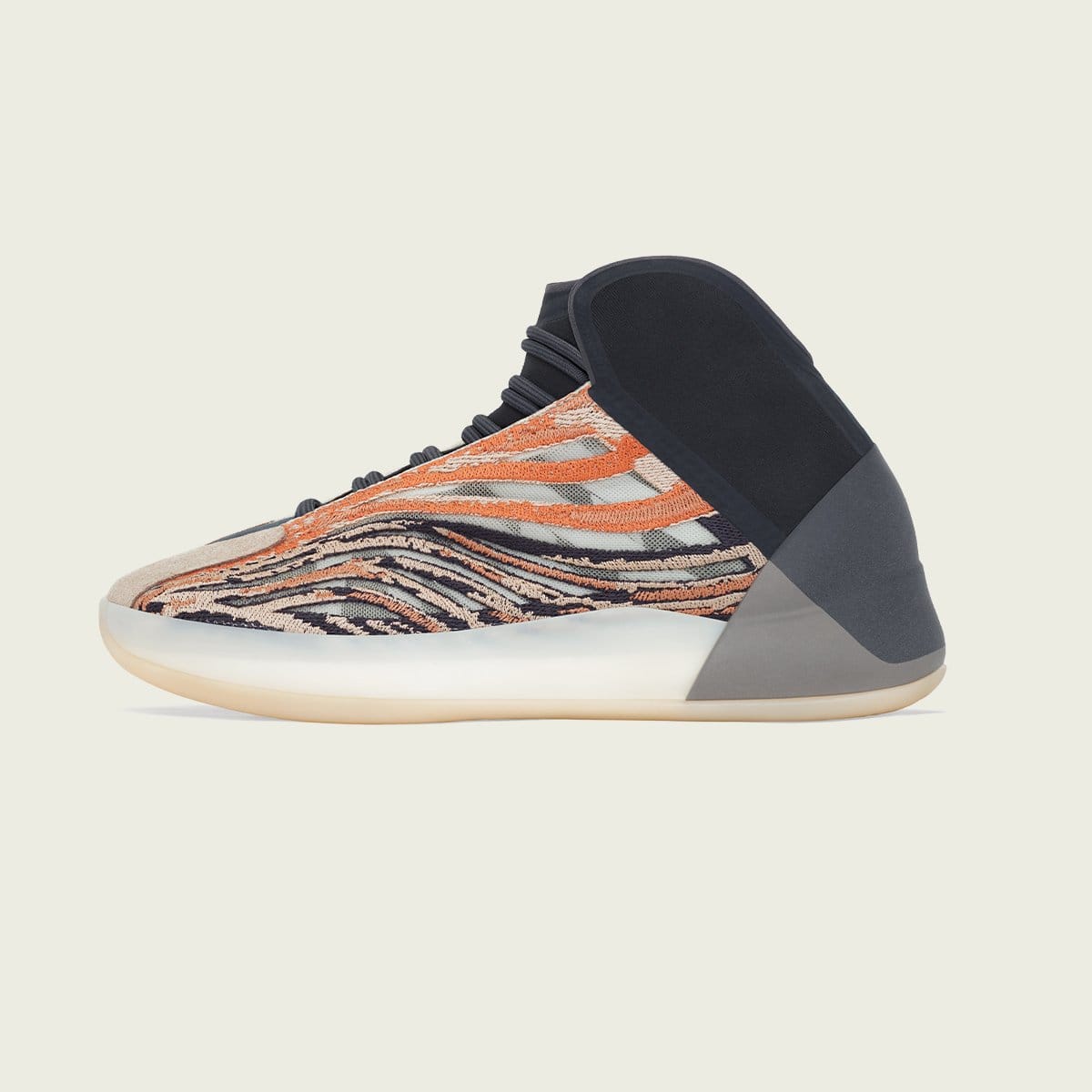 Back in February 2020, the YEEZY QNTM was introduced to the world during the NBA All-Star weekend in Chicago. Showing up on the streets of Kanye's hometown in military-styled trucks, Yeezy brand surprised fans by giving away the new silhouette right out of their trunks. This basketball inspired shoe caught a lot of attention even though they are not allowed on the court and eventually more colourways like "Frozen Blue" and "Sea Teal" were released since. This week, the "Flash Orange" colourway will be available. Keep reading for more specifications about this basketball-inspired model.