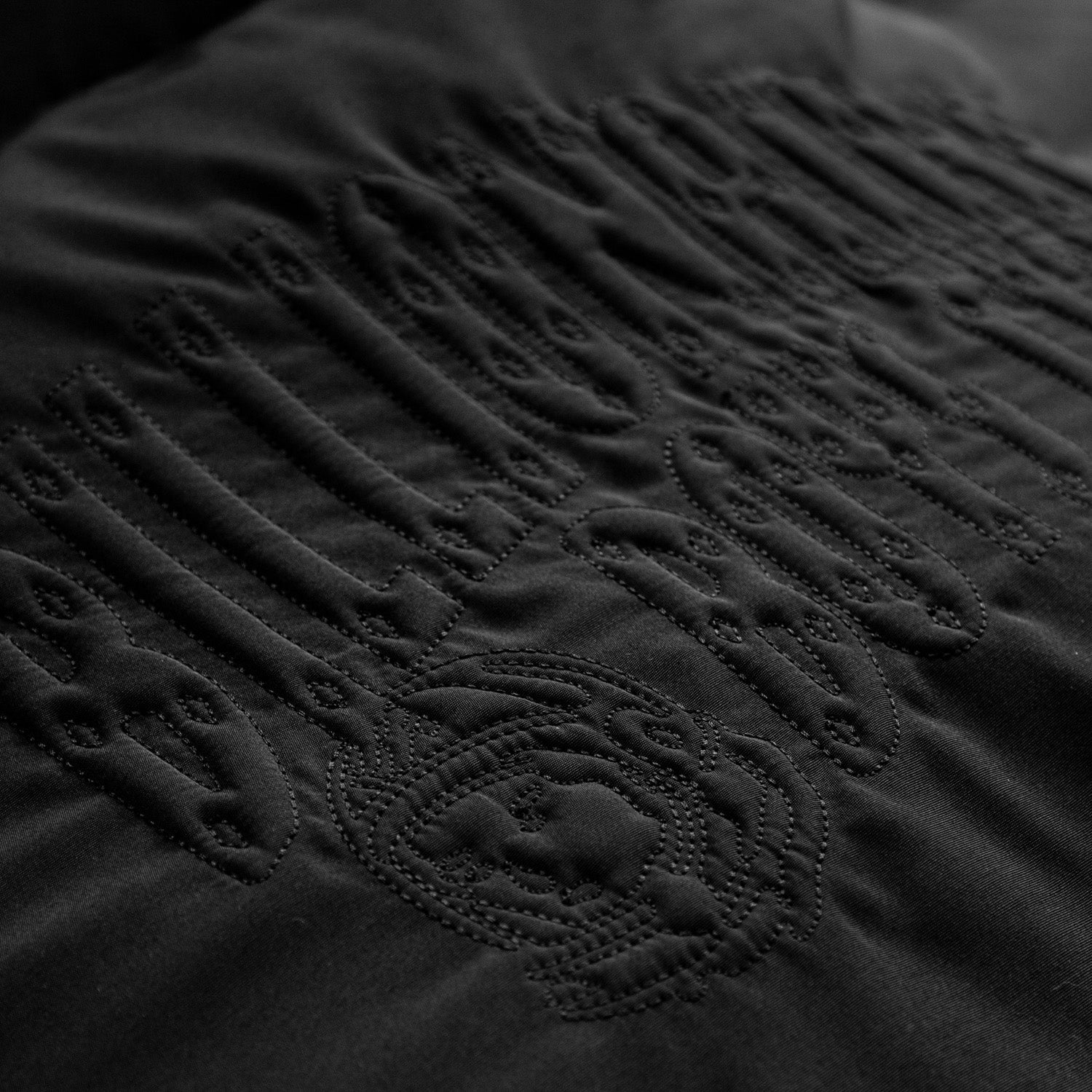 A black, nylon puffer jacket featuring a zip closure and velcro fastening along with an embossed Helmet Head logo appliqué.