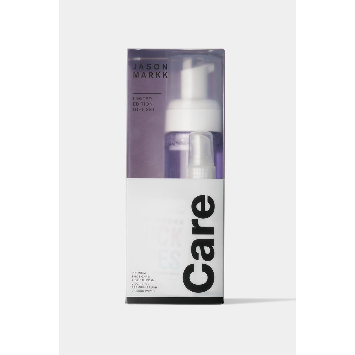 The Jason Markk Limited Edition Gift Set Covers all your premium shoe care needs! The set includes our RTU Foam, a Premium Brush, 3 Quick Wipes, and a 2 oz. Repel. Whether It's for a friend, family, or yourself, it's the perfect gift for all occasions.