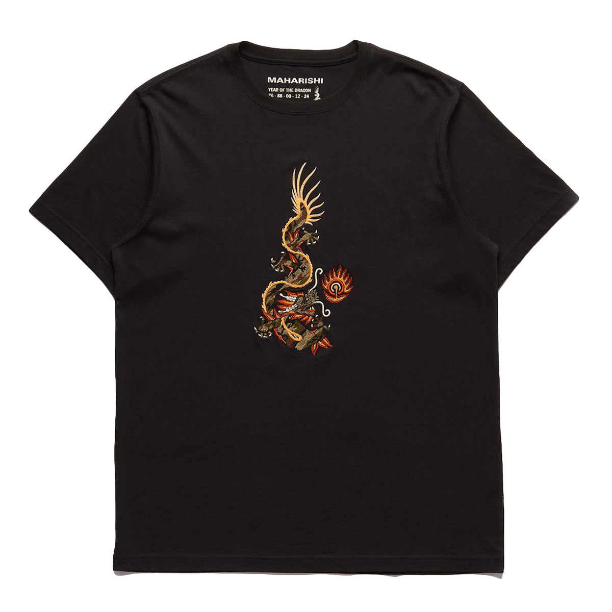 Short sleeve tee features Maharishi's Original Dragon in hand machine embroidery at the chest.